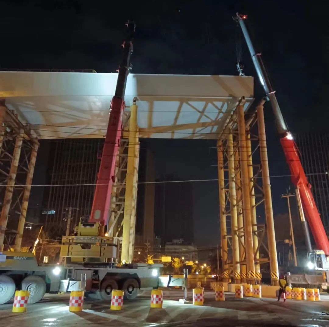 項目直擊|南泥灣大道改造工程古田二路110KV段鋼箱梁吊裝完成!